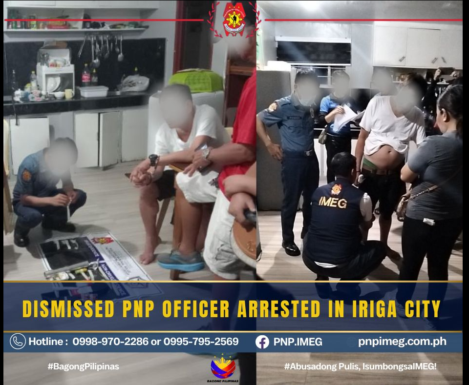 The suspect, a former policeman, was apprehended for violation of RA 9165 or the Comprehensive Dangerous Drugs Act of 2002. Based on reliable intelligence, IMEG Team 5 received reports that the dismissed officer was involved in the proliferation of illegal drugs in Iriga City and adjacent towns. Acting on this information, the team formulated an intelligence-driven operation plan that was jointly executed with SOU 5-PDEG (lead unit), PIU/PDEU, RIU 5, and Iriga CPS, Camarines Sur PPO, PRO 5, in coordination with PDEA PRO 5.