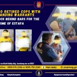 “Diligence and persistence of the operatives of the Philippine National Police Integrity Monitoring and Enforcement Group (PNP-IMEG) paid off after the arrest of two retired erring cops identified as SPO2 Manuel R Laureta (Ret) and PO3 Dennis R Dia (Ret) thru Warrant of Arrest both for the crime of Estafa on April 26, 2023.” PBGEN continue reading : TWO RETIRED COPS WITH STANDING WARRANTS LOCK BEHIND BARS FOR THE CRIME OF ESTAFA