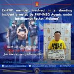 Philippine National Police Integrity Monitoring and Enforcement Group (PNP-IMEG) Director, PBGEN SAMUEL C NACION, announces the arrest of an ex-Police member identified as PSSg Luis M Jomok III by virtue of warrant of arrest for the crime of Homicide under Art. 249 of RPC at # 83 Cabrera Rd. Kaytikling Brgy. Dolores, Taytay, Rizal on continue reading : EX-PNP MEMBER INVOLVED IN SHOOTING INCIDENT ARRESTED BY PNP-IMEG AGENTS UNDER INTELLIGENCE PACKET “MOKONG”